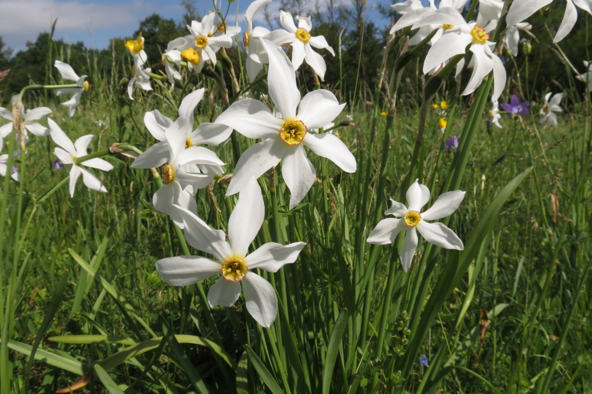 are the narcissius poeticus habitat subsp. Radiflorus, such as the professional name of the bulb, called narcissus, by home fünkesnica or also a lock. According to tradition, it was supposed to be named because God wanted to punish bees who also collected honey on Sundays.